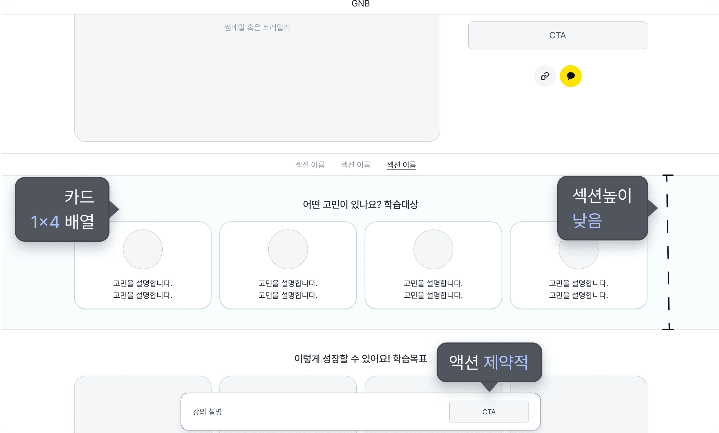 또한 각 섹션을 ‘모듈’로 구성하여 에디터에서 수정가능하도록 정리하여, 개발 공수를 최소화하였습니다.