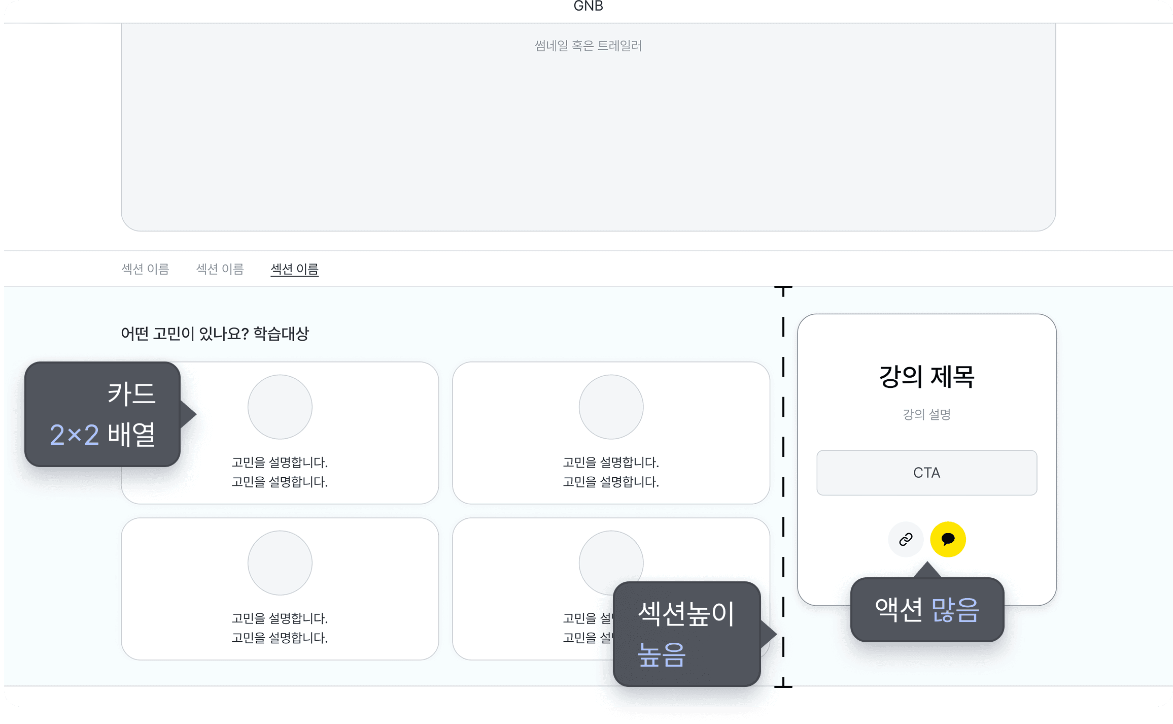 이미 운영 중인 다수 상품에 즉시 확장 가능해야하는 제약사항을 고려해, 기존 상세페이지의 설득 구조를 유지 및 확장하는 방향으로 정리하였습니다.